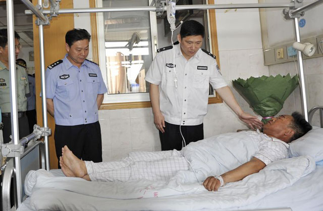 7月30日上午,市公安局徐乾副局長在交巡警支隊蘇必偉支隊長和公司婁伯翱總經(jīng)理等領(lǐng)導(dǎo)的陪同下,前往八二醫(yī)院看望慰問了因公負(fù)傷的我公司保安四大隊交通協(xié)管員孫長如,詳細(xì)詢問了受傷經(jīng)過和治療情況,囑咐他好好養(yǎng)傷,祝他早日康復(fù),并送上了慰問金。