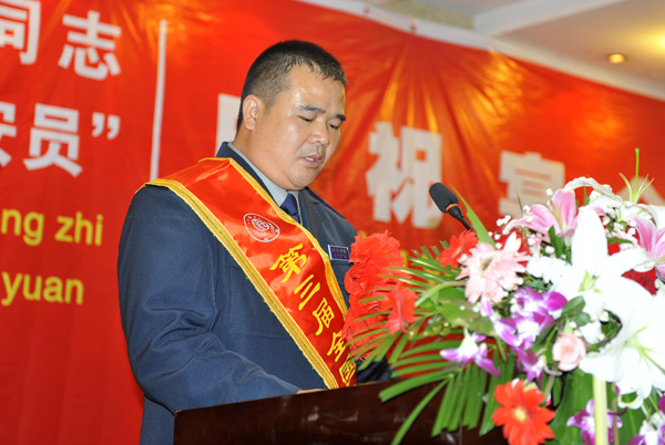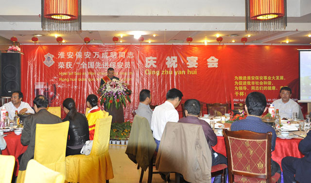 2011年9月29日晚,總公司在天地緣大酒店隆重舉行“萬(wàn)成明同志榮獲第三屆全國(guó)先進(jìn)保安員稱號(hào)慶祝宴會(huì)”。宴會(huì)之前,王克副總經(jīng)理宣讀了總公司對(duì)萬(wàn)成明同志的表彰決定,徐文剛副總經(jīng)理為萬(wàn)成明同志頒發(fā)了獎(jiǎng)金,同時(shí),萬(wàn)成明發(fā)表了獲獎(jiǎng)感言。