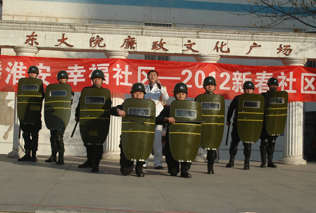 總公司迎春晚會的兩個節(jié)目《少年壯志不言愁》和《保安擒敵表演》應邀參加演出。盡管天氣寒冷,但隊員們不懼嚴寒,精彩的演出博得了社區(qū)數百居民的陣陣掌聲。保安員走進社區(qū),讓老百姓更加了解淮安保安,向普通百姓展示了淮安保安的豐富的企業(yè)文化。