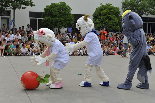下午兩點多,天空格外的湛藍,孩子們陸陸續(xù)續(xù)走進公司院內,到處充滿了節(jié)日的氣息,樹上、墻上都掛滿了氣球和彩帶,一副熱鬧的景象。還有可愛的卡通人物喜羊羊與美羊羊、灰太狼和米妮在院子里給孩子們派發(fā)甜蜜的糖果,讓孩子們洋溢在快樂中。