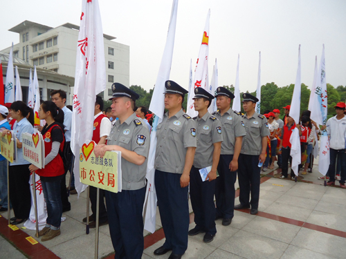 早上8:30左右 , 隊員們統(tǒng)一制服,帶上隊旗和隊牌,在師范學(xué)院王營校區(qū)生物科學(xué)館前廣場前參加環(huán)保知識的宣傳活動。隊員們紛紛表示,保護(hù)環(huán)境,與我們的生活息息相關(guān),從身邊小事做起,將切實落實到保安的實際工作中去。作為青年志愿者,將呼吁身邊更多的人用實際行動,共同為保護(hù)洪澤湖、保護(hù)環(huán)境而盡心盡力,為努力營造一個優(yōu)美的人居環(huán)境而努力。