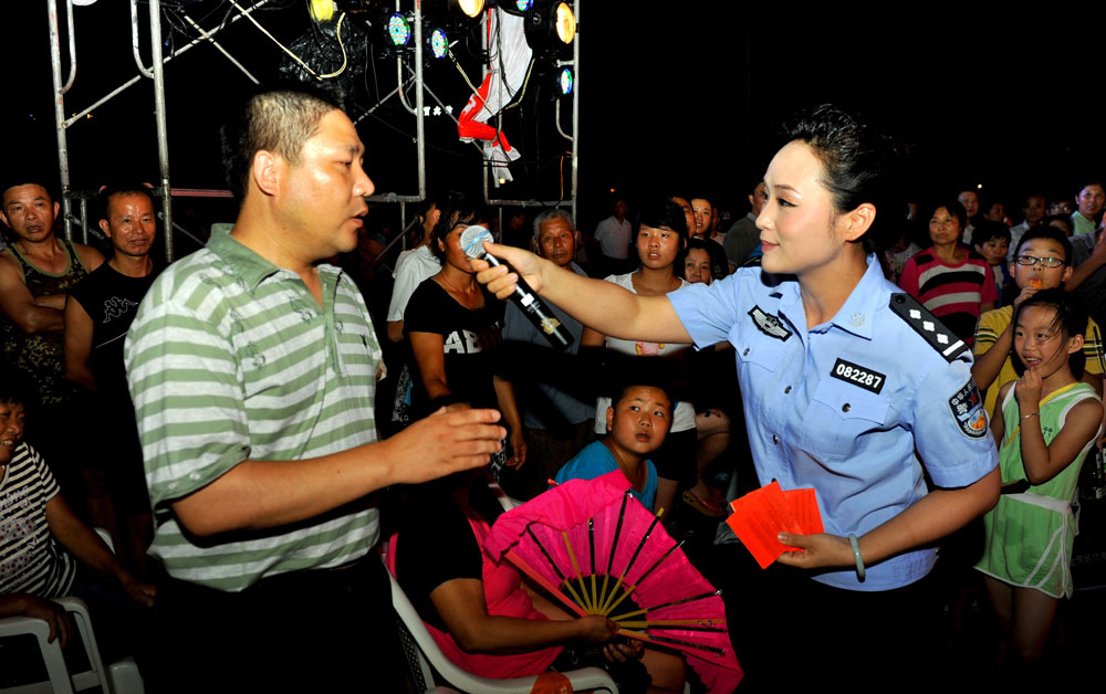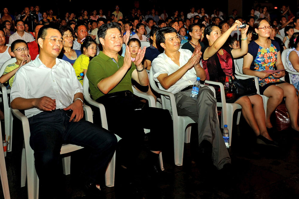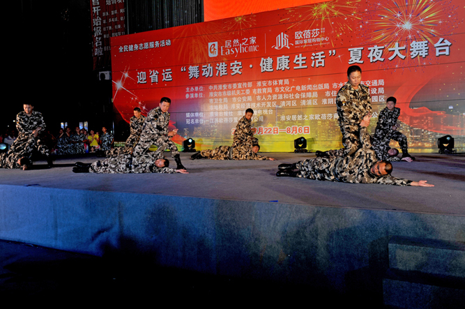 7月30日晚,淮安市公安局在體育館廣場舉辦“舞動淮安·健康生活”夏夜大舞臺市民健身活動公安專場演出?;顒釉诩ぐ旱墓捻嵚曋欣_帷幕??偣镜木实那軘潮硌荨㈤_場舞以及《當(dāng)祖國召喚》等節(jié)目參加活動,贏得了現(xiàn)場市民的陣陣掌聲?;顒又羞€進行了省十八屆運動會和健康生活知識有獎問答。市局黨委委員、機關(guān)黨委書記蘇必偉、總公司總經(jīng)理婁伯翱等領(lǐng)導(dǎo)在現(xiàn)場觀看了演出。市交巡警支隊、特警支隊、總公司人防中心等100余人參加活動。