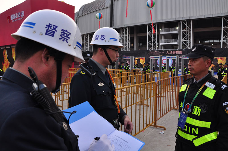 為做好安保工作,11月2日上午,人防中心專門組織參加臨沂安保人員進行專項培訓(xùn)。3日上午7:00集合出發(fā),提前到達臨沂大學(xué),按照承辦方要求,現(xiàn)場搭建300米防爆墻,10個預(yù)檢票口通道,承擔(dān)了25000名觀眾入場的安檢、檢票通道的秩序維護等安保任務(wù)。