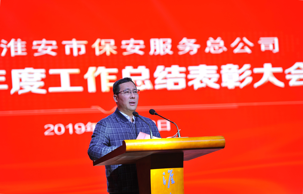 婁伯翱總經(jīng)理代表黨總支感謝國聯(lián)集團領(lǐng)導參加會議,希望各部門進一步發(fā)揚成績,振奮精神,在本職工作崗位上奮發(fā)圖強,銳意進取,為做強做優(yōu)做大淮安保安做出新的更大的貢獻!