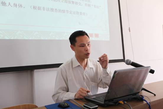 圖為:南湖區(qū)公安分局法制科張警官,正在傳授法律知識(shí)。