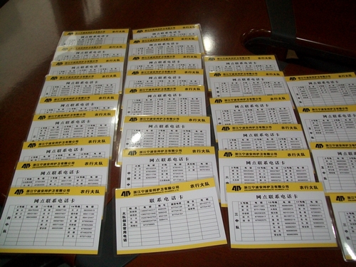 為提高大隊(duì)押運(yùn)服務(wù)質(zhì)量,增強(qiáng)一線押運(yùn)車組與網(wǎng)點(diǎn)服務(wù)單位的直接協(xié)調(diào)溝通,減少應(yīng)聯(lián)系不夠造成的各類誤會,寧波安邦護(hù)衛(wèi)有限公司農(nóng)行大隊(duì)根據(jù)各中隊(duì)線路網(wǎng)點(diǎn)編排情況,特定制了一批服務(wù)網(wǎng)點(diǎn)固定電話聯(lián)系卡,并配發(fā)到各中隊(duì)車組上,方便使用。通過近一個(gè)月的試用,效果較好,提高了業(yè)務(wù)工作聯(lián)系的時(shí)效和準(zhǔn)確性,避免了因業(yè)務(wù)聯(lián)系不到位造成的投訴現(xiàn)象,各方反應(yīng)良好。
