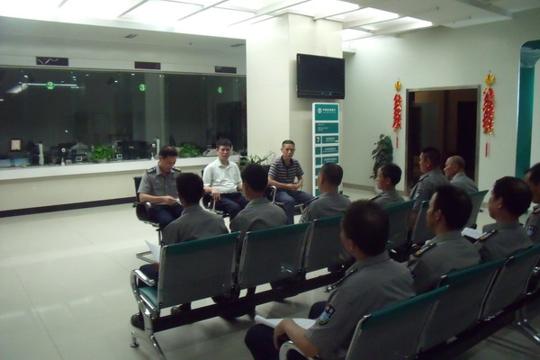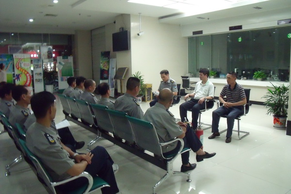 (上圖)為了組織好此次專(zhuān)項(xiàng)銀行突發(fā)事件應(yīng)急演練的消防安全演練,黃瑞明科長(zhǎng)和林銘春中隊(duì)長(zhǎng)以實(shí)例向保安員講解應(yīng)對(duì)犯罪嫌疑犯人在營(yíng)業(yè)廳實(shí)施搶劫暴力侵害時(shí),要以“平息事態(tài)、控制局面、防止擴(kuò)大散、減少損失”為主要原則,針對(duì)不同情況采取制止、保護(hù)、求援、疏散等方法,確保銀行營(yíng)業(yè)場(chǎng)所的安全,并對(duì)消防安全“四個(gè)能力”建設(shè)、火災(zāi)基礎(chǔ)知識(shí)、高層建筑逃生自救、辦公樓常用消防設(shè)施的檢查、使用等多個(gè)方面進(jìn)行對(duì)保安員詳細(xì)講解培訓(xùn)。