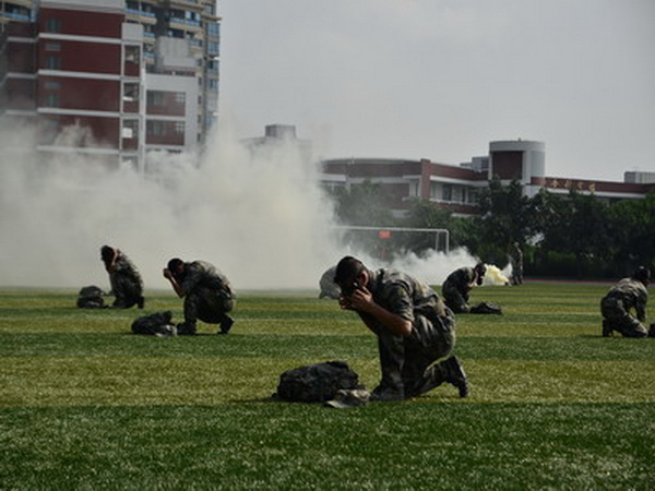 9月1日是泉州市解放63周年紀念日,泉州市人防辦每年都在這一天舉行一次防空警報試鳴暨人員疏散演練活動,主會場在各縣市輪流舉辦,各縣市設(shè)立分會場,今年的主會場設(shè)在南安市實驗中學。上午9點,泉州市人防辦、南安市人防辦在南安市實驗中學舉辦的泉州南安市防空警報試鳴暨人員疏散演練活動準時啟動,多種防空警報聯(lián)合試鳴,防化專業(yè)隊、消防專業(yè)隊、預備役營、治安巡邏專業(yè)隊、電力搶修專業(yè)隊、自來水搶修專業(yè)隊、醫(yī)療救護專業(yè)隊等多種人防專業(yè)隊參與救援演練。為確保演練取得成功,該市保安協(xié)警和校園專職保安及師生等700多人參與疏散演練。