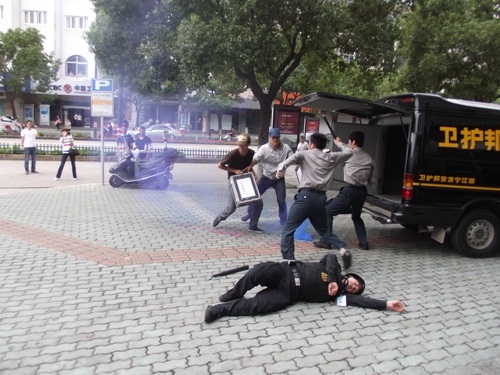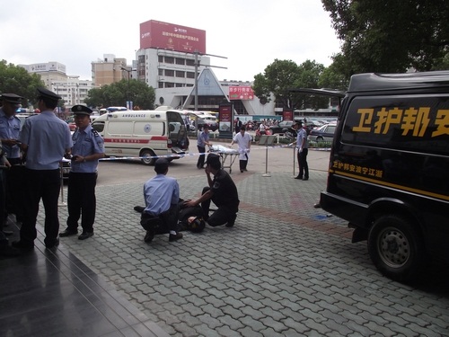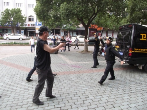 象山縣公安局舉行了反恐怖應(yīng)急實戰(zhàn)演練,寧波安邦護(hù)衛(wèi)有限公司象山大隊參與了配合。演練內(nèi)容為:當(dāng)運鈔車到達(dá)民生銀行網(wǎng)點正卸款箱時,突遇兩名持槍械恐怖分子沖向運鈔車,擊斃兩名押運員后,用煙霧彈實施爆炸,正要奪款箱而逃時銀行兩名保安員沖出網(wǎng)點與恐怖分子搏斗。公安機(jī)關(guān)接警后,110指揮中心立即下達(dá)指令,迅速調(diào)集武警、巡警、交警、刑警、消防等百余名警力和120急救中心緊急趕赴現(xiàn)場,進(jìn)行消防滅火和醫(yī)療急救,公安機(jī)關(guān)進(jìn)行現(xiàn)場勘查,并堵截交通要道,最終擒獲恐怖分子,追回款箱??h政府、縣公安局有關(guān)領(lǐng)導(dǎo)到場觀摩了演習(xí)。