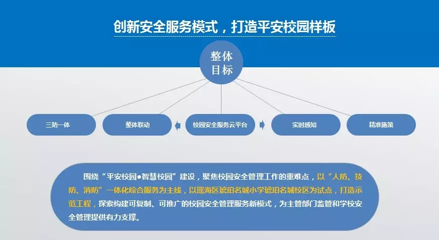 5月10日,合肥保安集團(tuán)有限公司與合肥市瑤海區(qū)琥珀名城小學(xué)正式簽署“平安校園”合作協(xié)議。雙方將以琥珀名城小學(xué)琥珀名城校區(qū)為試點(diǎn),共同打造“平安校園”示范工程,推廣校園安全管理服務(wù)新模式。琥珀名城小學(xué)擁有在校學(xué)生3200余名,近年來辦學(xué)規(guī)模不斷擴(kuò)大,但校園現(xiàn)有技術(shù)設(shè)備和安保服務(wù)分類建設(shè),系統(tǒng)性不足,合力不足,安防基礎(chǔ)設(shè)施設(shè)備較弱。在瑤海區(qū)政府、教體局等部門的指導(dǎo)下,保安集團(tuán)依據(jù)琥珀名城小學(xué)(琥珀名城校區(qū))自身特點(diǎn),通過優(yōu)化人防,增加安保人員與交通引導(dǎo)人員力量,強(qiáng)化管理監(jiān)督。提升技防使用入侵報(bào)警探測、電子巡更、智能分析系統(tǒng)等,實(shí)現(xiàn)監(jiān)控全覆蓋,消防在線監(jiān)測。更以保安集團(tuán)接處警中心為媒介與110接處警系統(tǒng)、公安局、教體局、衛(wèi)計(jì)委等形成多方聯(lián)動(dòng),大大提高了緊急事件處理的時(shí)效性。從多方面為琥珀名城小學(xué)(琥珀名城校區(qū))提供“一體化綜合智能安保服務(wù)”。