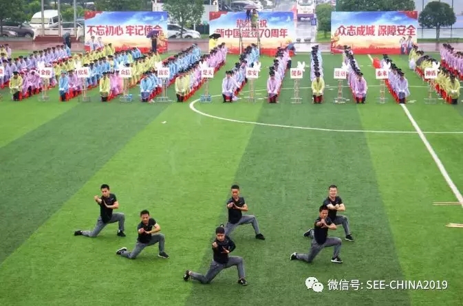 在隨后進行的分列式、隊列、武術表演、處置醫(yī)療突發(fā)事件、交通指揮操、校園突發(fā)事件處置演練、一招制敵、消防演練、犯罪嫌疑人在自助銀行存取款機上安裝偽讀卡器和隱形攝像機應急處置演練、擒敵拳配套、倒功、防搶演練等項目演練過程中,節(jié)奏緊湊、動作流暢、搏斗精彩,贏得了全場陣陣喝彩和掌聲。