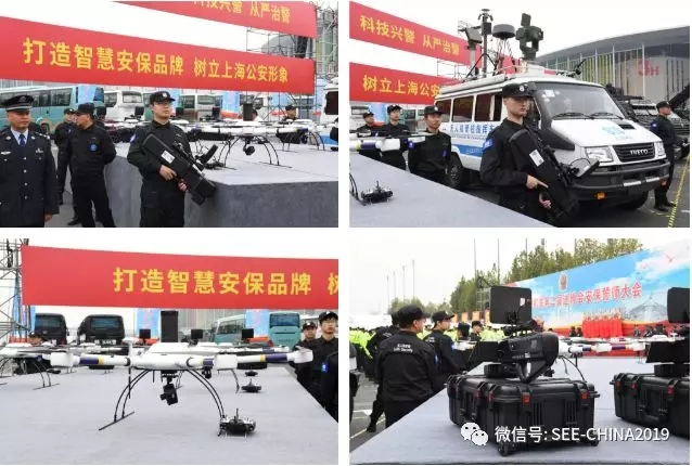上海保安集團(tuán)警盾無人機(jī)團(tuán)隊(duì)亮相誓師大會(huì)現(xiàn)場(chǎng),展示新型科研設(shè)備。