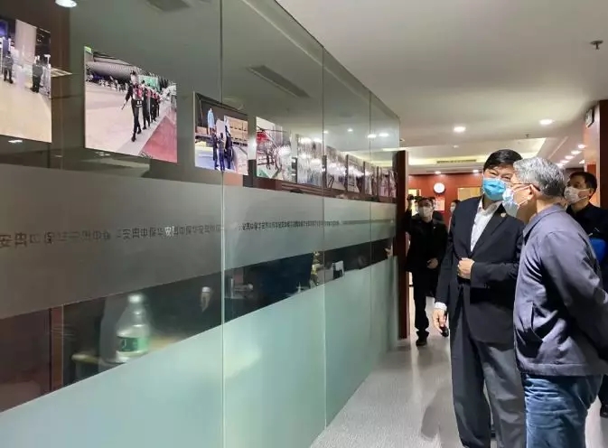 沙海林會(huì)長一行,首先慰問了一線的中保華安集團(tuán)安保人員代表,參觀了智慧安防產(chǎn)品陳列室、安全服務(wù)中心,觀看集團(tuán)在抗疫一線武漢安保人員傳回抗疫戰(zhàn)斗圖片展示以及集團(tuán)文化陳列室。孔憲明總裁介紹了集團(tuán)簡況和抗疫戰(zhàn)斗情況,以及公司在海外工作情況。集團(tuán)作為一家全國性、綜合型、國際化的新型現(xiàn)代安全服務(wù)企業(yè),以“立足上海、服務(wù)全國、走向世界”為戰(zhàn)略目標(biāo),已在上海、天津、浙江、江蘇、安徽、福建、寧夏、陜西、四川、湖北、廣西、廣東、海南、遼寧、新疆等省、自治區(qū)和直轄市投資創(chuàng)辦了18家獨(dú)立法人的保安服務(wù)公司,并在全國設(shè)有11家分公司,服務(wù)網(wǎng)絡(luò)遍及國內(nèi)120多個(gè)城市。