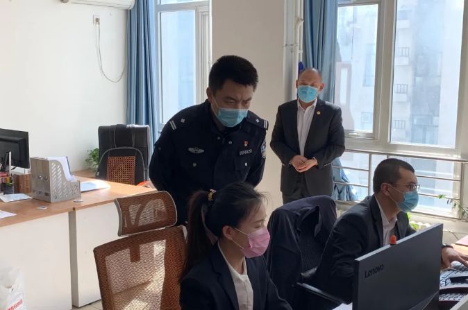 2020年3月19日,北京市公安局治安管理總隊保安管理支隊副支隊長任鵬、警官陳剛,大興區(qū)公安分局保安管理中隊中隊長關景泰,蒞臨中軍軍弘集團檢查指導新冠肺炎疫情防控和“清網治違”專項活動工作情況。