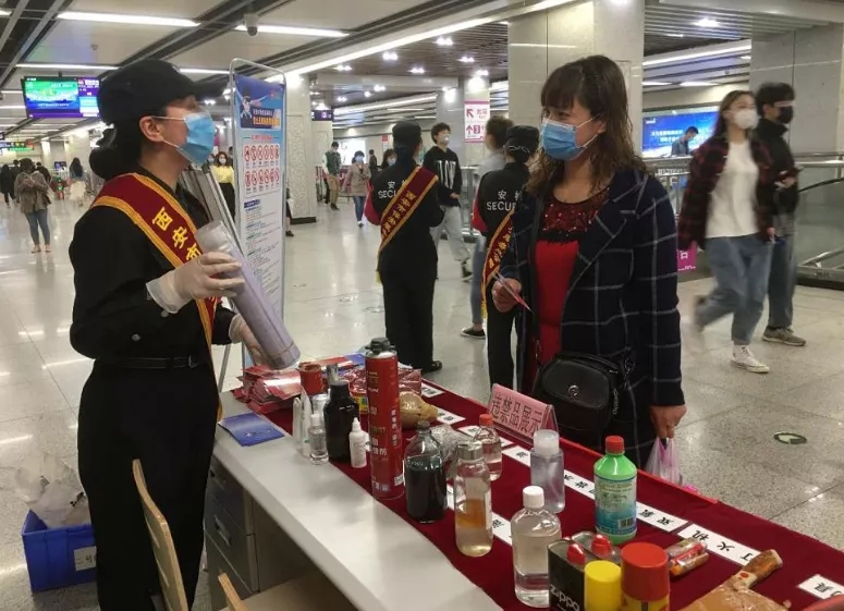 為深入貫徹落實習近平總書記的總體國家安全觀,落實國家、省級、市級反恐辦關(guān)于“切實增強全民國家安全意識,不斷提高人民群眾維護國家安全能力”為主要內(nèi)容的反恐怖宣傳教育,同時加強對疫情期間進站乘車人員的防護保障措施,保障所有出行乘客的人身及生命財產(chǎn)安全,按照西安軌道交通集團有限公司工作部署安排,結(jié)合“4·15全民國家安全教育日”和掃黑除惡宣傳,貫徹落實分公司決定在全線網(wǎng)范圍開展為期一周的反恐怖普法宣傳教育活動和疫情防控相關(guān)知識宣傳講解,4月15日,西安市保安服務總公司、西安地鐵運營分公司、公安地鐵分局韋曲南派出所在西安地鐵二號線小寨站,按照運營一中心下發(fā)的“關(guān)于反恐怖普法宣傳教育活動計劃”,開展違禁品展示宣傳專項活動的通知”,聯(lián)合開展“安全出行、共建平安和諧地鐵”,“警民牽手110違禁品宣傳”“2020年新冠疫情防控”等宣傳教育活動。