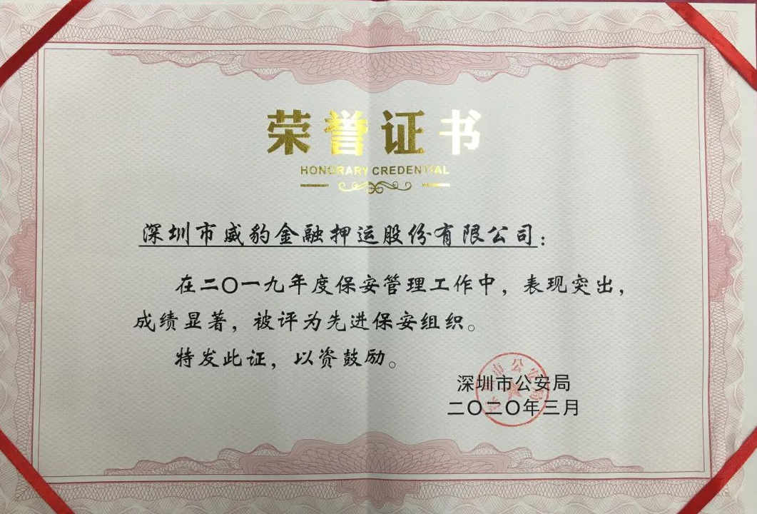 公司董事長(zhǎng)胡可、總經(jīng)理王瑋分別代表威豹押運(yùn)、威豹保安接受了榮譽(yù)牌匾和證書 周立群副支隊(duì)長(zhǎng)首先向威豹押運(yùn)和威豹保安公司在2019年度取得的成績(jī)表示祝賀,他說,威豹公司在去年的工作中表現(xiàn)優(yōu)異,特別是在70周年大慶安保工作中,不但利用企業(yè)資源無償為社會(huì)提供了安保服務(wù),還有效保障了周年煙花匯演順利進(jìn)行。周副支隊(duì)長(zhǎng)表示,榮譽(yù)既是肯定也是責(zé)任,希望威豹公司能夠在新的一年里繼續(xù)發(fā)揮保安隊(duì)伍協(xié)助維護(hù)社會(huì)治安穩(wěn)定的作用,為建設(shè)平安深圳做出積極的貢獻(xiàn)。