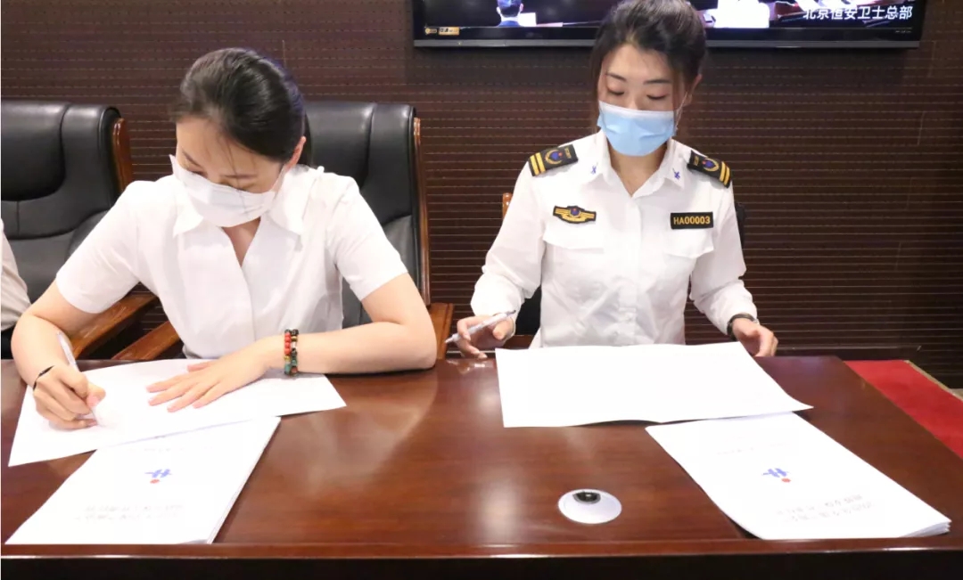 會(huì)議期間,恒安衛(wèi)士副總經(jīng)理郭艷茹與北京地鐵1、2號(hào)線項(xiàng)目經(jīng)理張麗紅、張二偉,現(xiàn)場(chǎng)簽訂《2020年全國(guó)“兩會(huì)”地鐵安保工作責(zé)任書(shū)》簽訂完畢,董事長(zhǎng)現(xiàn)場(chǎng)宣讀《責(zé)任書(shū)》相關(guān)工作部署及要求如下: