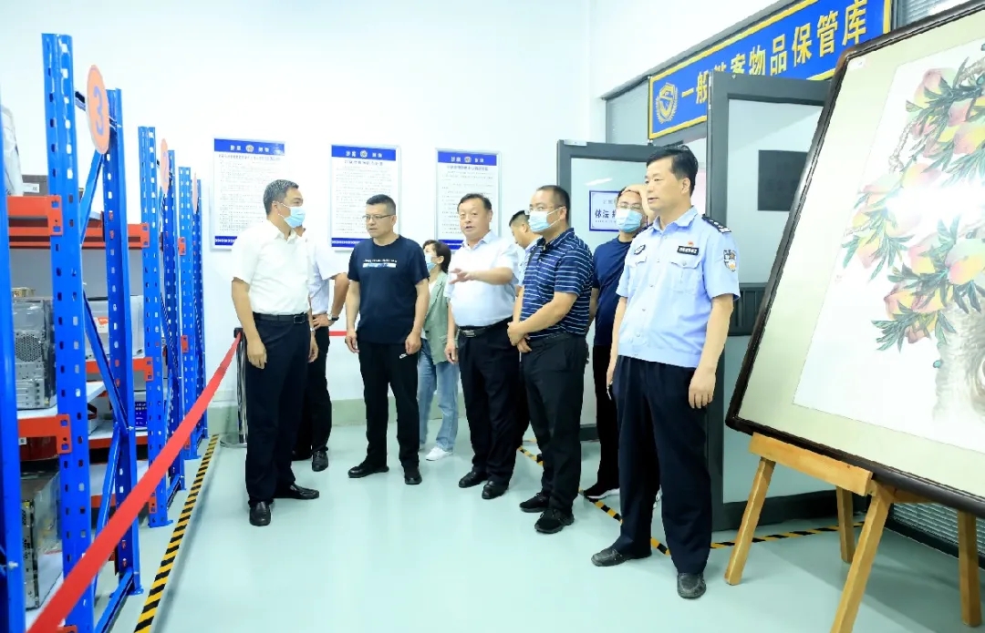 馬生海支隊(duì)長(zhǎng)一行認(rèn)真聽取了涉案財(cái)物管理中心建設(shè)背景情況介紹,觀看了涉案財(cái)物一體化管理宣傳片。實(shí)地考察了管理中心各類涉案財(cái)物保管庫(kù)房和涉案車輛保管區(qū)。