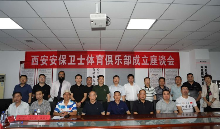 7月11日,西安安保衛(wèi)士體育俱樂(lè)部在陜西秦之盾保安服務(wù)有限公司會(huì)議室召開了成立座談會(huì),正式宣告了全國(guó)首家保安員體育俱樂(lè)部在西安成立。成立座談會(huì)由西安市保安協(xié)會(huì)副會(huì)長(zhǎng)、西安安保衛(wèi)士體育俱樂(lè)部法定代表人趙新彪主持。西安市保安協(xié)會(huì)會(huì)長(zhǎng)孟宗林、副會(huì)長(zhǎng)兼監(jiān)事長(zhǎng)朱小波、副會(huì)長(zhǎng)兼秘書長(zhǎng)程保衛(wèi)、副會(huì)長(zhǎng)竇智興、張金龍、李明輝、黃在元、李林安,副秘書長(zhǎng)楊存科、王華和西安市體育總會(huì)辦公室黨總支書記、主任范瑞明、西安市公安局反恐支隊(duì)支隊(duì)長(zhǎng)楊軍、中國(guó)警察馬拉松俱樂(lè)部西安跑團(tuán)團(tuán)長(zhǎng)章凡、原中央警衛(wèi)團(tuán)總教練程相賢、北京紅森安全技術(shù)有限公司(紅森安全學(xué)院)董事長(zhǎng)、院長(zhǎng)程傳森、中國(guó)社會(huì)科學(xué)院高級(jí)顧問(wèn)、荷蘭安防專家羅賓、陜西省武術(shù)協(xié)會(huì)副主席馬文國(guó)、江泰保險(xiǎn)經(jīng)紀(jì)股份有限公司西安分公司市場(chǎng)總監(jiān)潘龍及有關(guān)媒體朋友20余人應(yīng)邀出席了座談會(huì)。