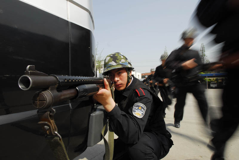 當(dāng)日是五一小長假的最后一天,我市押運隊伍開展以“反搶劫、反襲擊” 為主要內(nèi)容的反恐實戰(zhàn)演練,增強武裝押運隊伍快速反應(yīng)和協(xié)同作戰(zhàn)能力,為已開幕的世博會營造一個良好的治安環(huán)境。