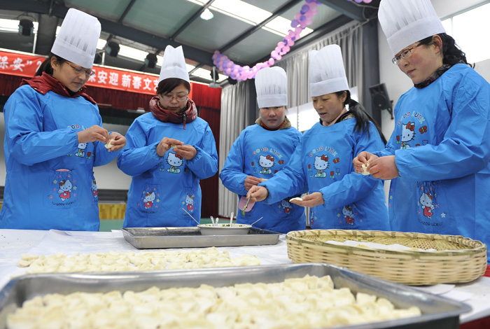 在煮餃子時候,每組又推選出一名女員工,參加“最佳能手”獎的比拼。只見在裁判規(guī)定的十分鐘內(nèi),四名女員工熟練的將刀工、手法、以及包餃子的技巧一一展現(xiàn),讓大家一飽眼福。