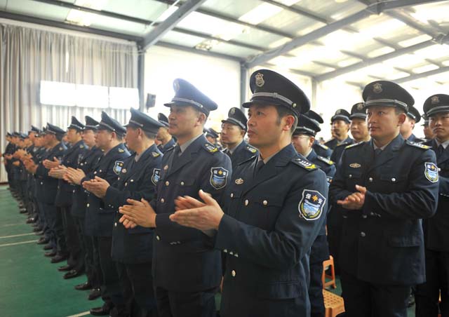 會(huì)議內(nèi)容和安排一切從簡(jiǎn),有四項(xiàng)議程,一是播放年度總結(jié)PPT文件,二是宣讀表彰人員名單,三是部門遞交責(zé)任狀,最后總經(jīng)理婁伯翱講話。押運(yùn)大隊(duì)市區(qū)押運(yùn)員和駐各縣隊(duì)員代表;機(jī)關(guān)各部門人員以及各分公司員工代表近700人參加了會(huì)議。