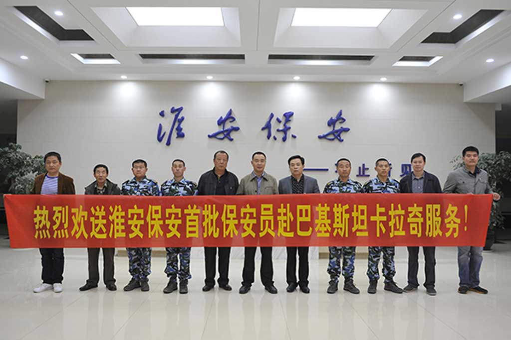 2016年4月16日,江蘇省淮安市保安服務(wù)總公司精心選派的張偉、武曉杰、劉軍、王殿善4名保安員由上海機(jī)場飛至巴基斯坦卡拉奇執(zhí)行海外安保服務(wù)。這是淮安保安公司自2015年11月向巴基斯坦卡拉奇派駐6名工程類安全員之后又一次派駐海外安保服務(wù)。