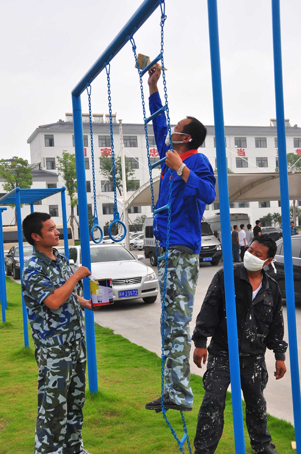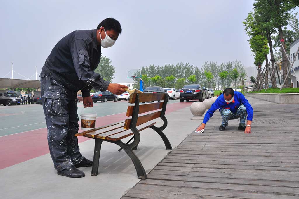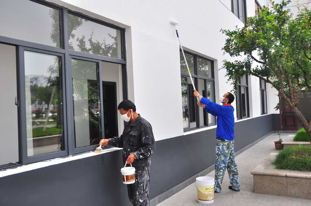 接到任務后,趙炳華、丁云清2名同志首先對所有施工現場進行了察看和預算,并制定了施工方案?;谘哼\樓是在老平房的基礎上翻新加層建筑,使得部分房間墻面脫落并出現裂縫,樓體墻面防水層破損,每逢下雨天便有雨水不同程度的滲漏,影響了辦公和生活秩序,加上公司院內籃球架、單雙杠器材、木椅、木橋、樓前防護木等褪色和部分損壞的情況,以及剛建好的綜合活動中心二樓1100多平方米木質地板需要進行漆化處理。面對如此工程,趙炳華、丁云清2名同志迅速作出合理安排和應對措施,開始著手對樓體做好防水處理,同時將1至5層樓的隊員宿舍、辦公室、更衣室等所有房間1000多平方米的墻面進行打磨粉刷,并對公司剛建好的活動中心二樓1100多平方地面進行多次漆化處理,以及房屋里外設施進行了修繕。