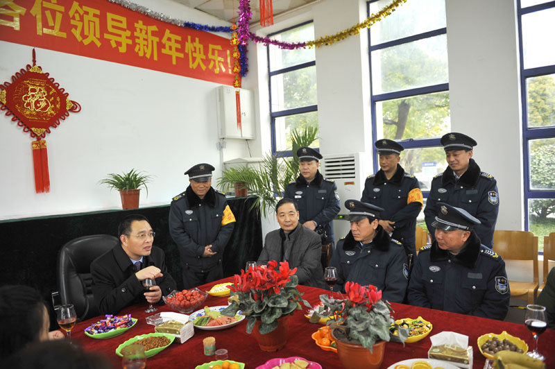 當(dāng)天上午,在人防管理中心總監(jiān)王錦春陪同下,婁伯翱總經(jīng)理慰問(wèn)了駐市審批中心、淮陰卷煙廠、市財(cái)經(jīng)學(xué)院、市護(hù)理學(xué)院等人防執(zhí)勤點(diǎn)以及銀盾駕校等部門堅(jiān)守崗位的保安員工。在每個(gè)執(zhí)勤點(diǎn),婁伯翱總經(jīng)理都與堅(jiān)守崗位的保安員親切握手,并詳細(xì)詢問(wèn)隊(duì)員的工作和生活情況,向堅(jiān)守崗位的隊(duì)員致以新春的問(wèn)候,祝福大家新春快樂(lè)、全家幸福!并勉勵(lì)大家在新的一年里勤奮工作,敬業(yè)奉獻(xiàn),為淮安保安工作再上新臺(tái)階作出更大的貢獻(xiàn)!