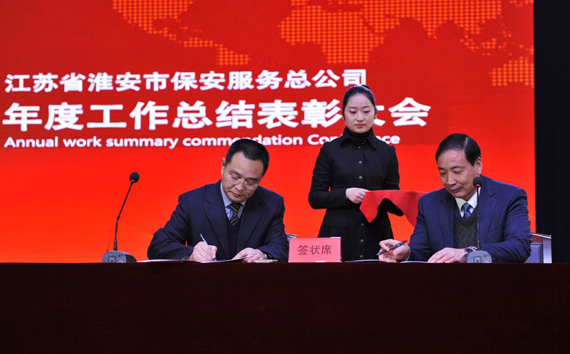 會議通過多媒體工作報告對淮安保安2016年度工作進行了總結(jié),表彰了年度工作突出的先進集體和先進個人,對公司2017年度工作進行了部署。婁伯翱總經(jīng)理代表總公司與押運管理中心、人防管理中心、駐外分公司等13個部門簽署了2017年度目標責任狀。