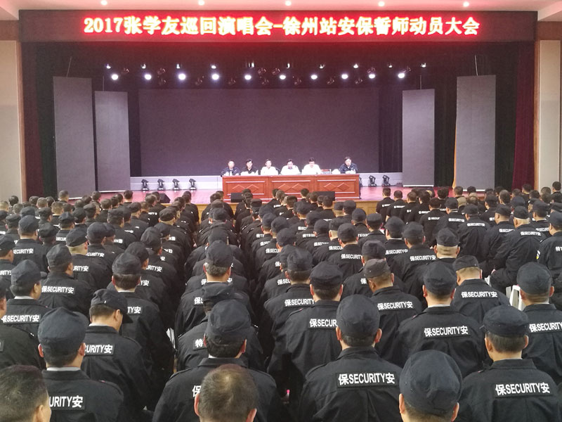 5月13日,“A CLASSIC TOUR學(xué)友·經(jīng)典世界演唱會(huì)”徐州站,人防中心組織450名特勤隊(duì)員,提前加強(qiáng)大型活動(dòng)安保專項(xiàng)培訓(xùn),并5月12日上午在總公司會(huì)議室召開(kāi)動(dòng)員會(huì),從大局意識(shí)、組織紀(jì)律、崗位職責(zé)、警容督查、后勤保障等各方面作了周密部署。在徐州奧體中心,淮安保安人嚴(yán)明的組織紀(jì)律,高度負(fù)責(zé)任的工作責(zé)任心受到了主辦方的高度認(rèn)可。