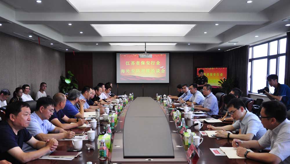 2018年8月7日上午,江蘇省保安協(xié)會(huì)邀請(qǐng)江蘇省商務(wù)廳、江蘇海外企業(yè)集團(tuán)有限公司、江泰聯(lián)盟有關(guān)主管部門,組織淮安市保安服務(wù)總公司、南京市保安服務(wù)總公司、徐州精誠(chéng)特衛(wèi)保安服務(wù)有限公司、江蘇英杰保安服務(wù)有限公司、江蘇世安保安服務(wù)有限公司、蘇州營(yíng)財(cái)保安服務(wù)股份有限公司、云之約安全服務(wù)(江蘇)有限公司等重點(diǎn)企業(yè),在淮安市召開了江蘇省保安行業(yè)海外安防對(duì)接洽談會(huì),建立了全省保安行業(yè)海外安防協(xié)作交流機(jī)制。