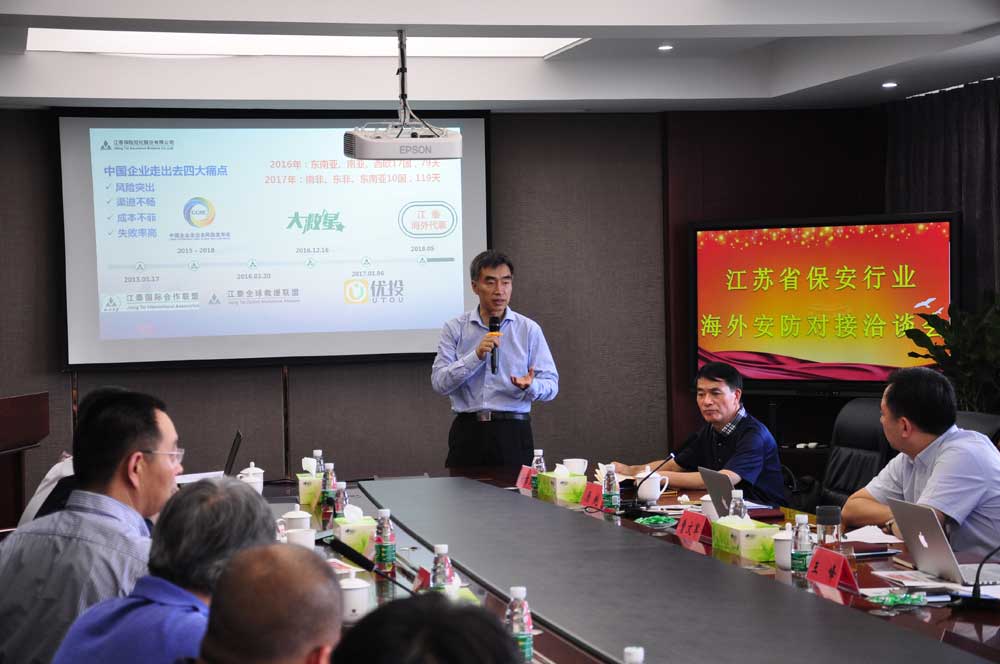 會(huì)上,江泰保險(xiǎn)經(jīng)紀(jì)股份有限公司重點(diǎn)發(fā)布了海外投資安全風(fēng)險(xiǎn);江蘇省海外企業(yè)集團(tuán)介紹了海外投資項(xiàng)目有關(guān)情況,提出了具體安防需求;淮安市保安服務(wù)總公司等企業(yè)分別介紹了“走出去”的探索做法和下階段的發(fā)展方向。