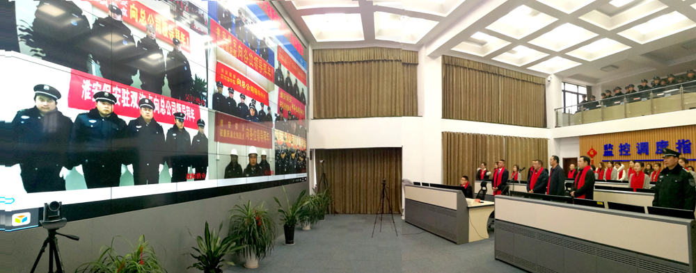 隨后,在婁伯翱總經(jīng)理陪同下,湯正明董事長來到二樓監(jiān)控指揮調(diào)度中心,通過互聯(lián)網(wǎng)視頻系統(tǒng),連線慰問了總公司駐上海、重慶、南京等8個駐外保安項目部。