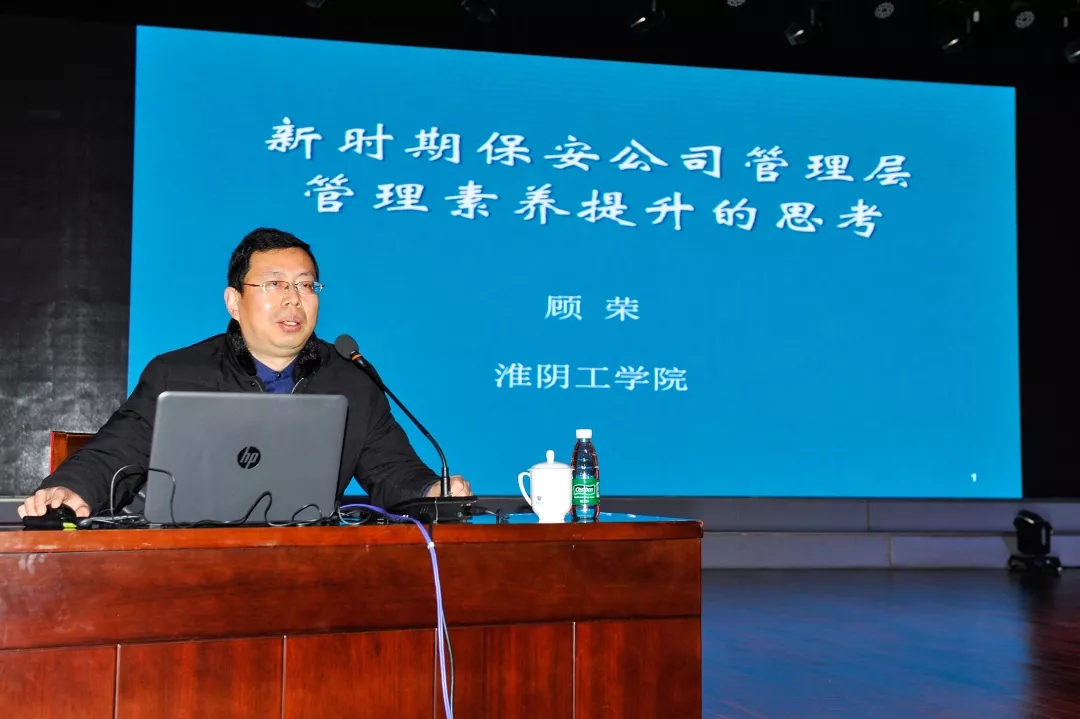 此次培訓特邀淮陰工學院顧榮教授作《新時期保安公司管理層管理素養(yǎng)提升的思考》主題講座,顧教授結(jié)合淮安保安工作實際,分別從保安業(yè)發(fā)展歷史、保安公司發(fā)展趨勢、如何建立現(xiàn)代企業(yè)制度、如何提升企業(yè)管理者的影響力和執(zhí)行力、如何建立企業(yè)愿景和使命五個方面,對如何提升管理層管理素養(yǎng)和管理水平等方面旁征博引、引經(jīng)據(jù)典,展開風趣的舉例講解和生動闡述,得到了全體參會者的一致好評。