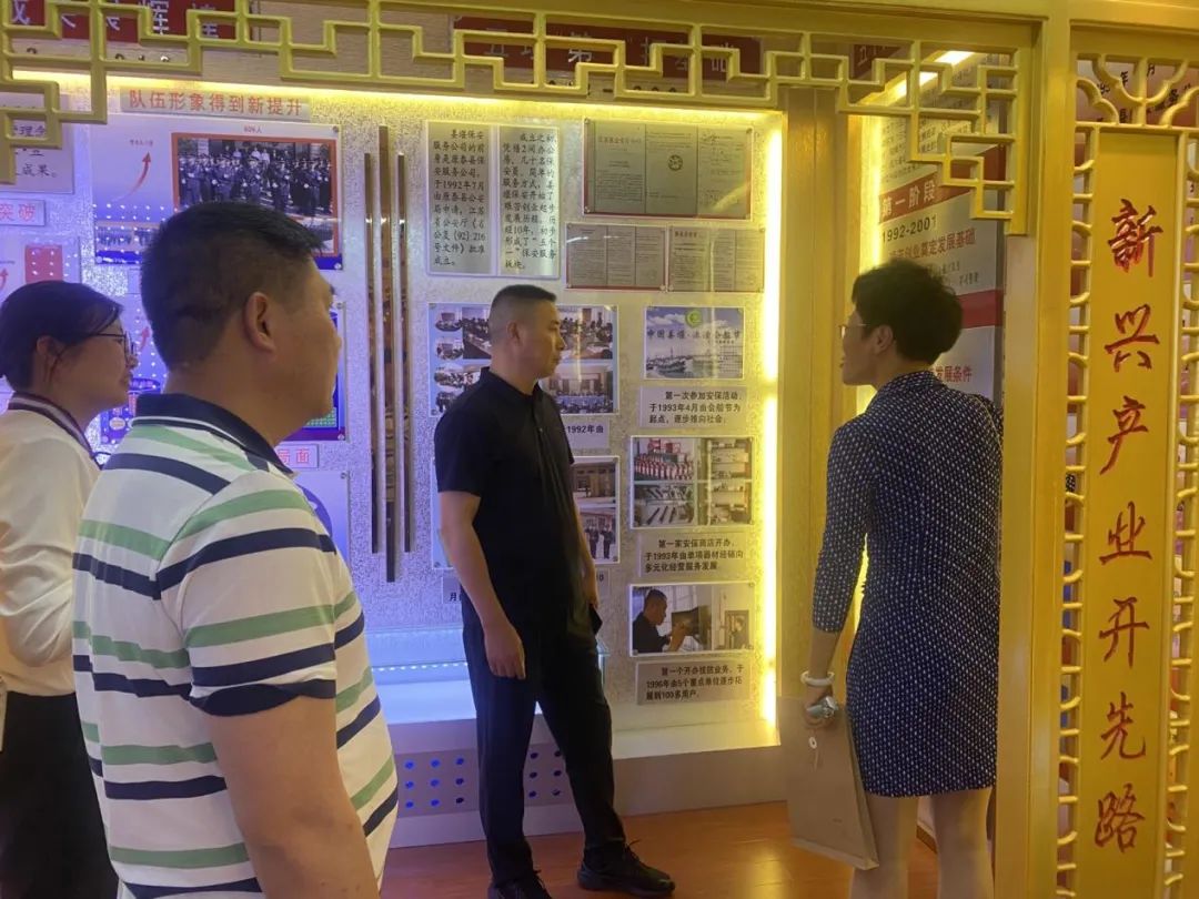 在江蘇泰姜保安服務有限公司,考察組一行參觀了武裝押運場所和公司發(fā)展史展廳。泰姜保安公司黨支部書記、總經理邱小琳介紹了當前企業(yè)發(fā)展狀況,雙方圍繞國企運營模式、安全管理、業(yè)務延伸、隊伍建設等方面進行了交流探討。